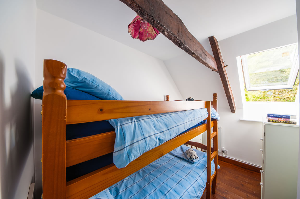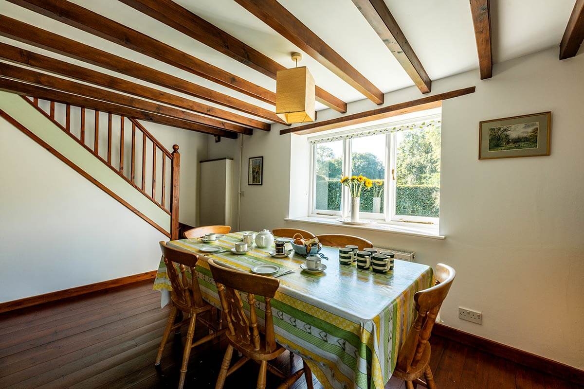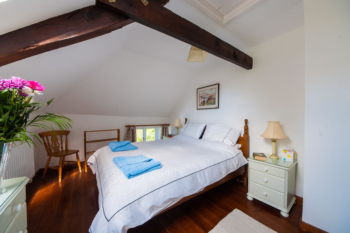 Enjoy the comforts of your own home in this sunny, south-facing cottage. As with all the other cottages, Deer Park is serviced by our newly installed biomass heating system, so constant hot water and heating are available throughout. There is double glazing for extra sound proofing and cosiness, open log fireplace, waxed pine floors, fully fitted kitchen, original characterful wooden beams in the upstairs rooms, comfortable furniture, internet wifi and flat screen “smart” TV with a DVD player.