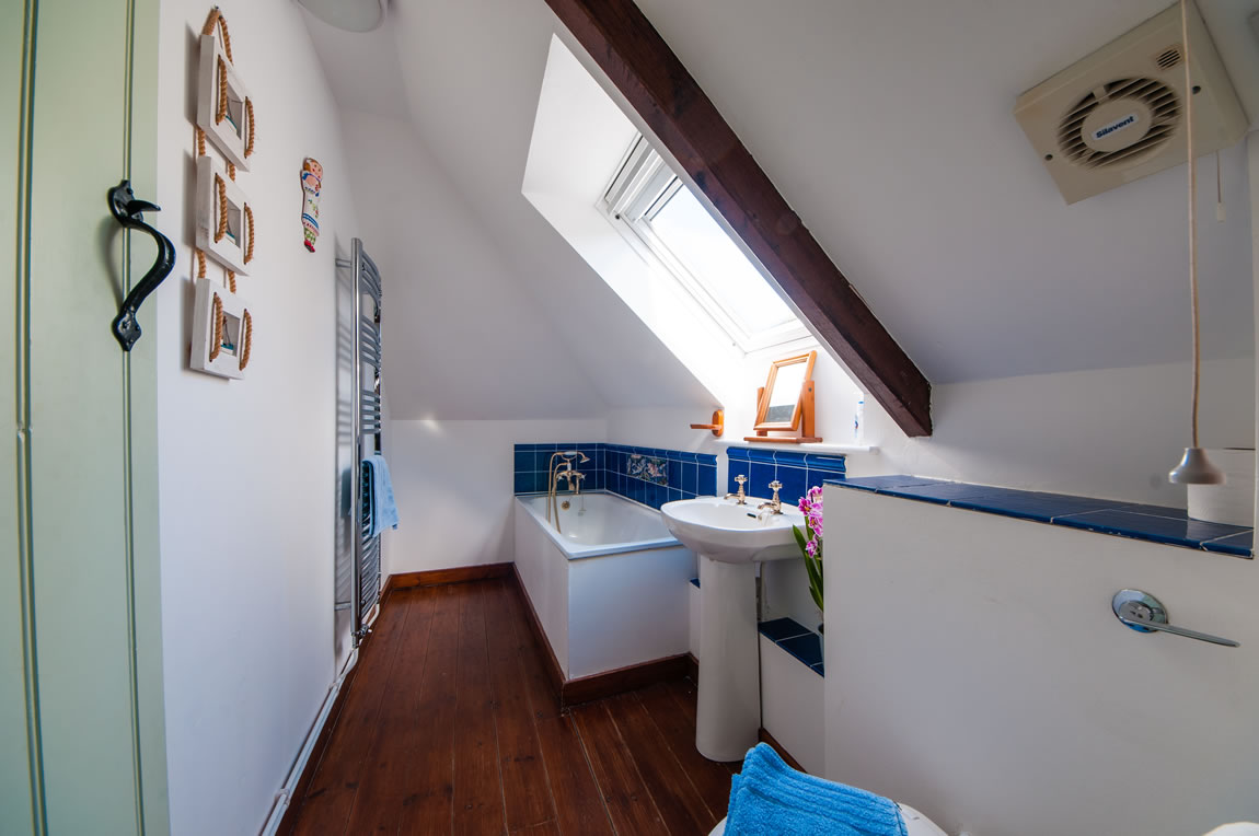 - The upstairs bathroom has toilet (W.C), a basin and bath with mixer taps and shower hose. There is also a full bath downstairs with stand-alone shower.