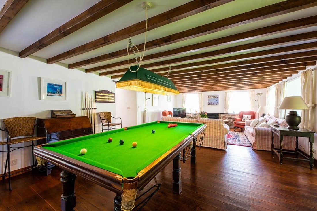 This spacious holiday cottage can sleep up to 8 people. Originally attached to the former manor house, which burned in 1937, Coach House is positioned just outside the courtyard, separate from the 3 other properties in the courtyard (divided only by a gate a few paces away from Paddock View). Our newly installed biomass heating plant is just outside, ensuring all guests can enjoy constant heat and hot water. The windows are also double glazed, so that you can enjoy total peace and quiet. Coach House has an open log fireplace, a pool table, and fully fitted kitchen. A wealth of original beams in the upstairs rooms and comfortable furniture make it feel individual and homely.